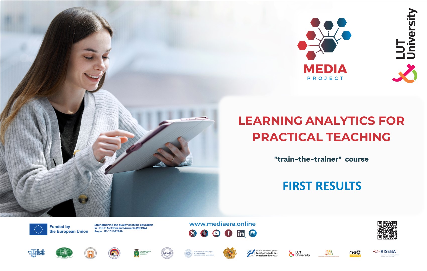 We are excited to share that the “Learning Analytics” course, one of the key components of the MEDIA project for educators in Moldova and Armenia, has officially concluded. Over the course from February to May 2024, participants explored advanced analytics in education with the guidance of LUT University experts. Interested in the initial outcomes from our course instructors? Head over to our LinkedIn page to read an article detailing the first results and insights. MEDIA project LinkedIn page: https://www.linkedin.com/…/mediaera-project-89b143296…